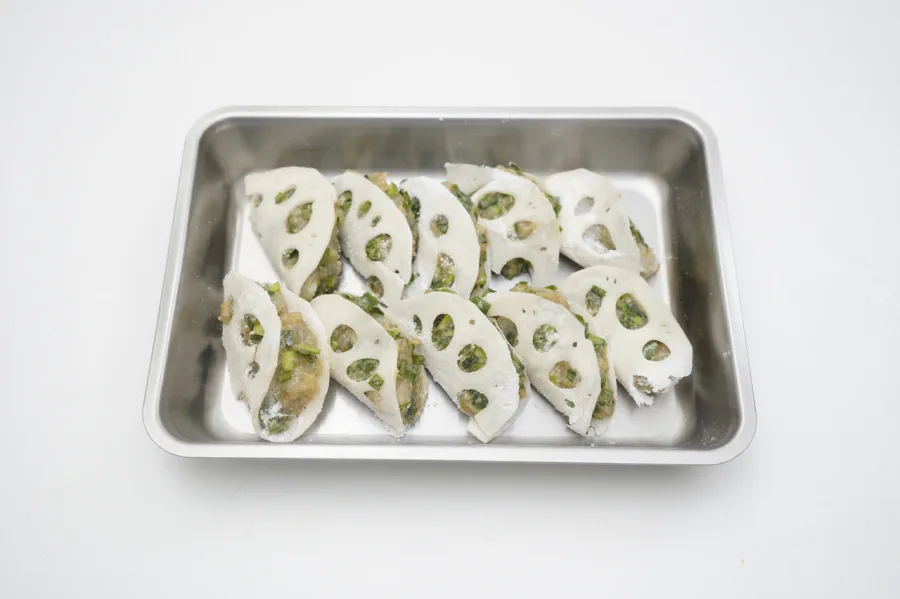 れんこんは1mm〜2mmほどの薄切りにすると、折って挟む際に割れにくくなりますよ。