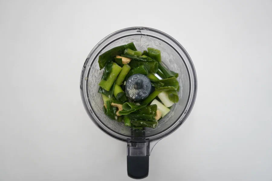 バジルで作るジェノベーゼをアレンジして青ねぎで仕上げました。ねぎの甘みと風味がオリーブオイルやチーズとマッチした洋風ソースです。