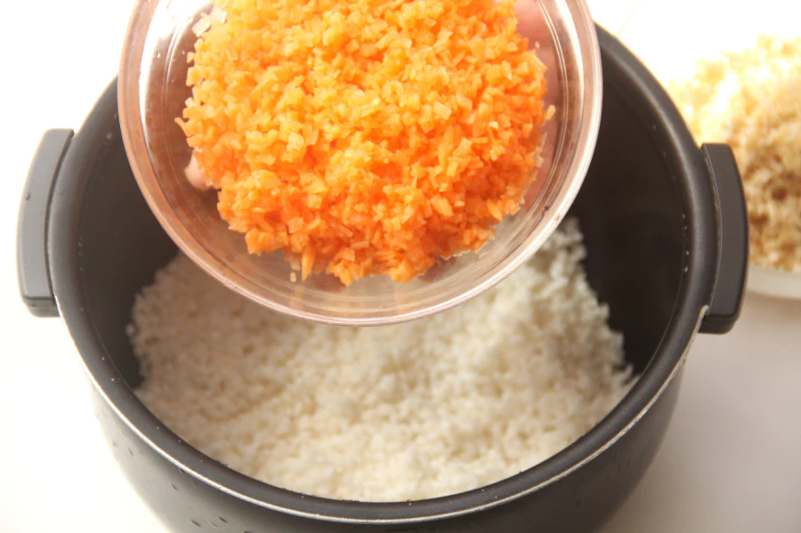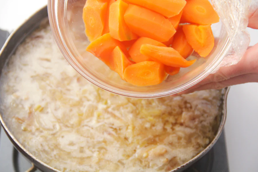 ニンジン、玉ねぎ、ニンニクはミキサーで撹拌してもよいです。