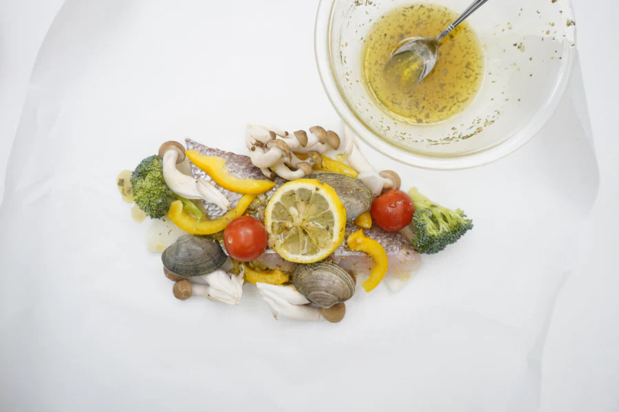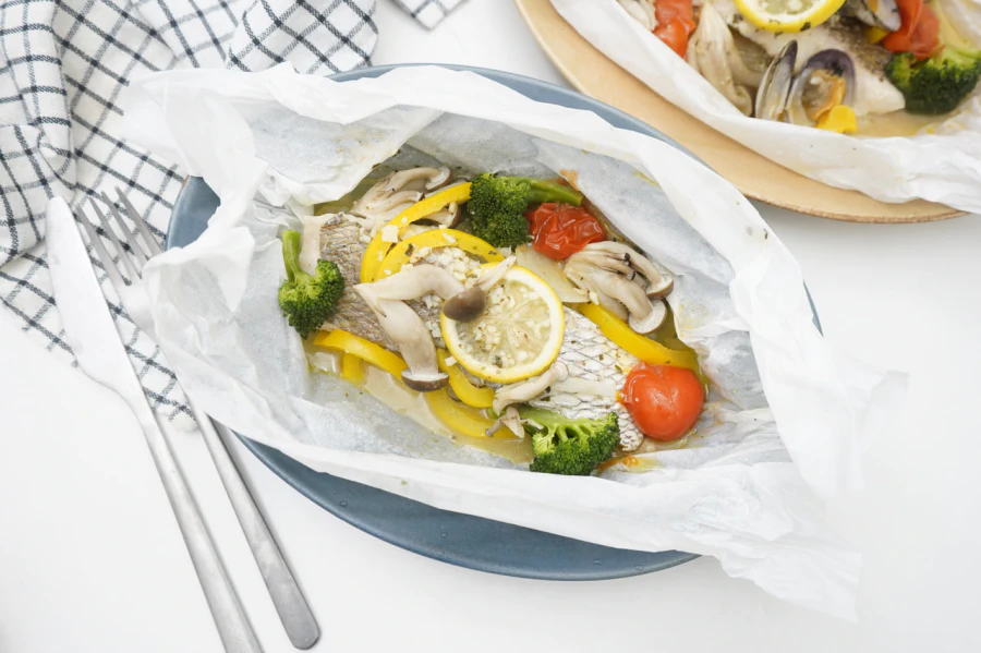 このレシピのポイントは「1人分ずつ鯛と野菜をクッキングシートで包んで冷凍する」ことです。