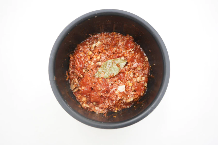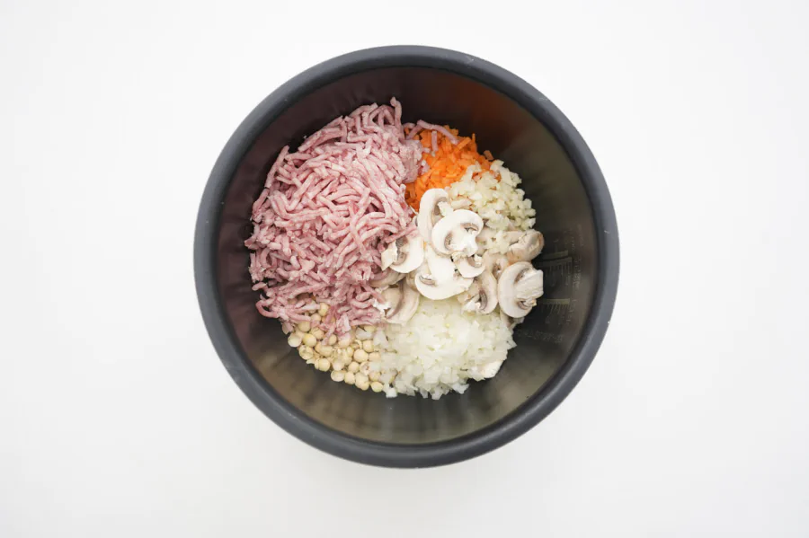 炊飯器に材料を入れてスイッチを押すだけで、福豆はやわらかくなり、ミートソースの旨みをたっぷり吸収できます。豆まきで使った福豆が、おいしく栄養満点の料理に生まれ変わりますよ。