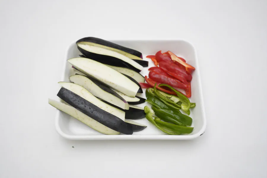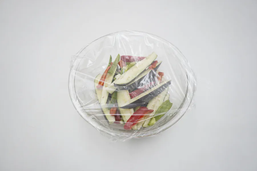 茄子にサラダ油をしっかりまとわせることで、色を鮮やかに仕上げることができます。